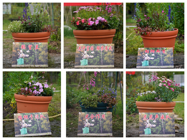 比赛中,每支队伍需在一个半小时内完成本组作品的设计、选品与制作,各位同学挥锹铲土、填土栽种、培实掩埋、浇水灌溉……认真细心地栽花种草,现场一派热火朝天、干劲十足的景象。