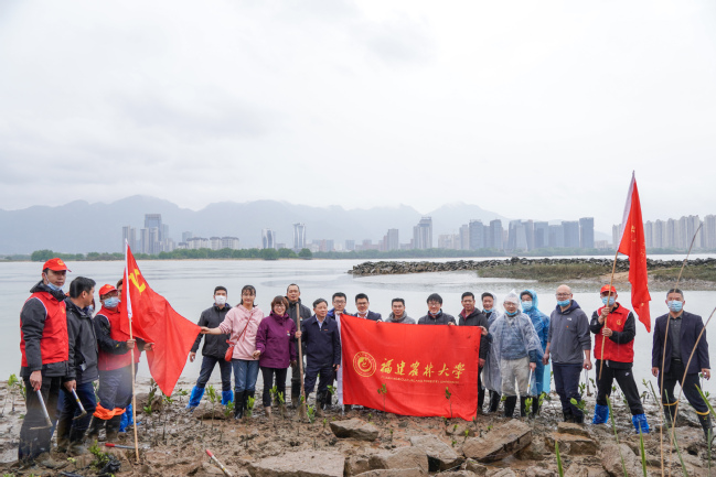 活动现场,在兰思仁校长的带领下,20余名代表们冒着细雨、穿着雨靴、扛着锄头、洋溢着笑容,三五成群一同在乌龙江江滩淤泥处种植了数百株红树林,用实际行动为福州的生态文明建设增添了新一道绿。随后,大家一同学习了习近平总书记3月30日在参加首都义务植树时的重要讲话精神,并就深化2个党支部共建进行了深入交流。