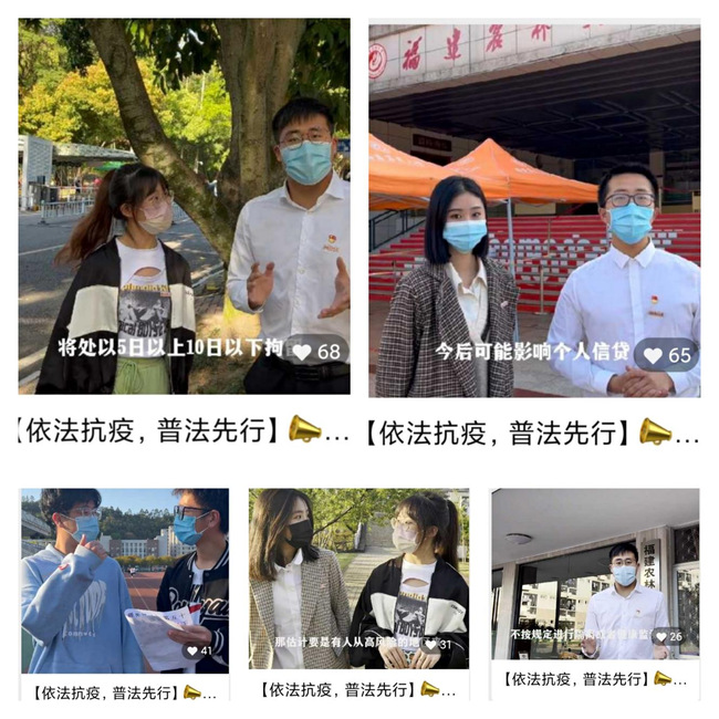本次系列视频发布于公共管理学院官方微信公众号“公管微报”旗下视频号“FAFU公小管”,共五期,截至4月13日,已吸引8156人次观看,作为疫情防控“五个上线”的疫情防控法律“知识上线”,助力校园疫情防控。