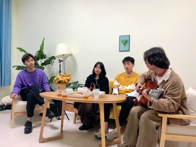 4月19日晚上,经济管理学院在院办107心理二级辅导站举行“我们·一起歌唱吧”活动。本次活动邀请了学院“东南西北”乐队参加,乐队由2019级乡村振兴班的汤明珠、张亚鑫和纪元三位同学组成,旨在用歌声为同学们带来一场抚慰心灵的音乐之旅,缓解同学们在疫情期间的燥郁情绪。