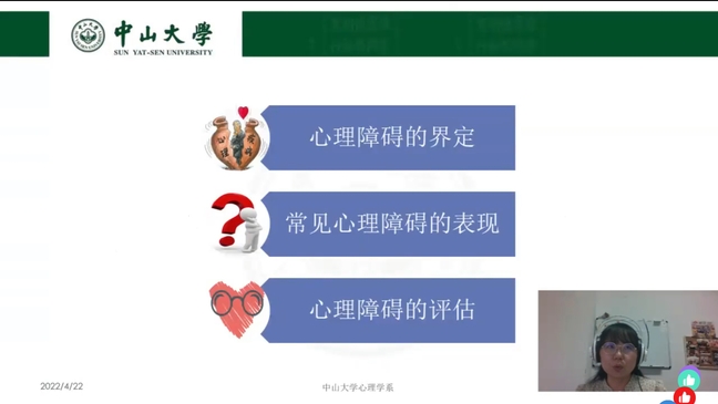 为进一步深化心理育人工作,完善心理育人机制,宣传心理健康知识,帮助学生识别常见的心理障碍,充分发挥学生心理骨干队伍在心理健康教育工作中的积极作用,4月22日晚,由大学生心理健康指导中心主办,公共管理学院、安溪茶学院共同承办的“5·25”学生心理骨干队伍培训之《常见心理障碍的识别与评估》线上讲座开展。本次讲座特别邀请中山大学心理学系副教授王雨吟博士担任主讲人,我校学生心理骨干共计800余人参与。