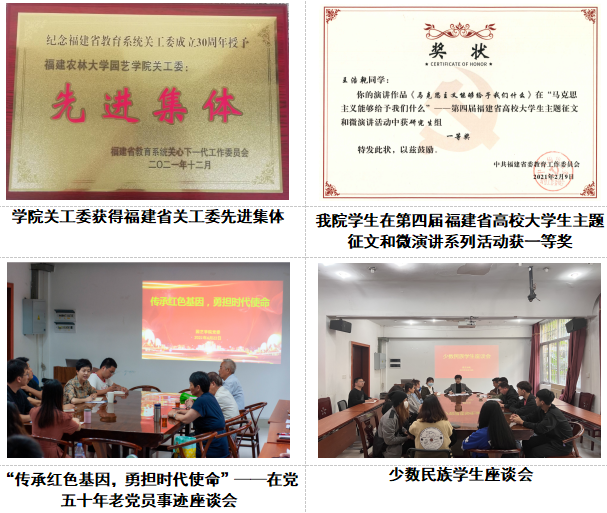 强化党支部作用,创新基层党组织优化设置。将党支部建在教研室、科研平台、创新团队、项目组、社团组织、科技小院、地方研究院、科特派上,共建立10个师生党支部、2个社团组织党支部,学院党员行政负责人带头担任党支部书记,形成一批省级B类(含)以上人才党员、重大项目成果主要负责同志党员担任党支部书记典型,有效实现“支部与团队共生,党建与教研并进”,精准抓住激活支部内在活力的着力点,有效促进学科发展和人才培养。5个党支部获全省党建工作样板支部培育创建单位;设施农业科学与工程教工党支部书记工作室获全省高校“双带头人”教师党支部书记工作室建设,茶学教工党支部案例入选福建省高校基层党建“十佳支部好案例”。