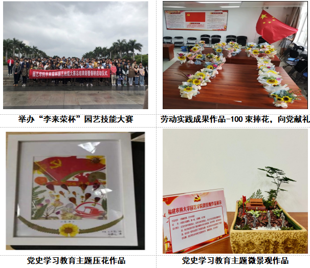 依托园艺专业特色,着力拓展党建文化第二课堂。学院党委着力将李来荣精神融入到学院各项事业,开展第二课堂科技文艺活动,将“果、茶、菜、花”专业知识与李来荣精神相融合,将学科专业发展过程中的重大事件、重要人物与理想信念教育、党史学习教育相融合,让学生在构思设计、素材选用、情景再造中形成历史认知,促进情感认同,发挥科研平台和科研项目的育人作用。