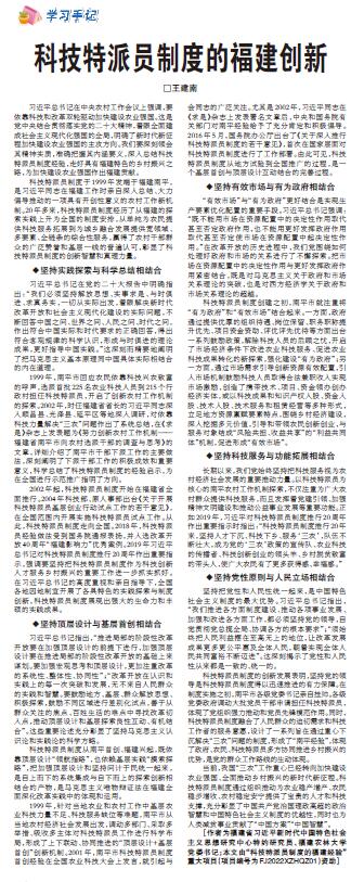 [作者为福建省习近平新时代中国特色社会主义思想研究中心特约研究员、开元kaiyuan(中国)党委书记;本文由“科技特派员制度的福建经验”重大项目(项目编号为FJ2022XZHQZ01)资助]