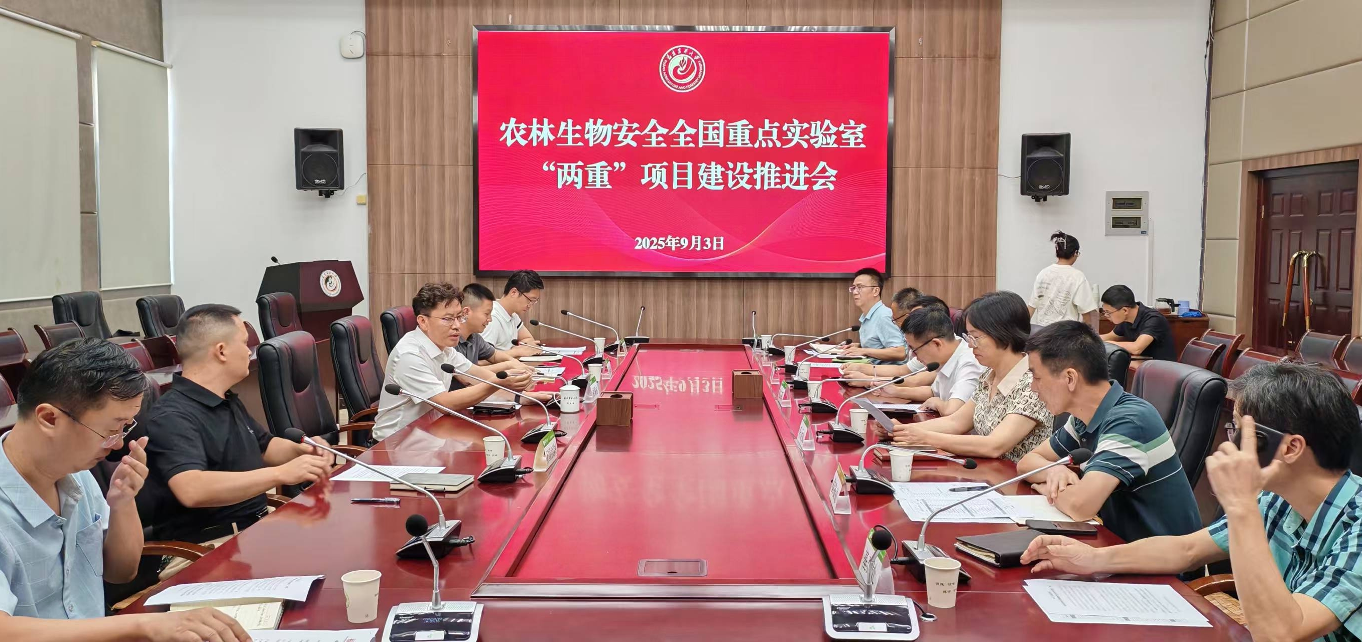 9月3日下午,学校组织召开农林生物安全全国重点实验室“两重”建设推进会,就具体工作进行了再落实、再部署。副校长周顺桂,科技处、教工部、审计处、计财处、国资处、后勤处、基建处、信息中心、全国重点实验室、测试中心等有关单位负责人参加会议。会议由科技处处长修新田主持。