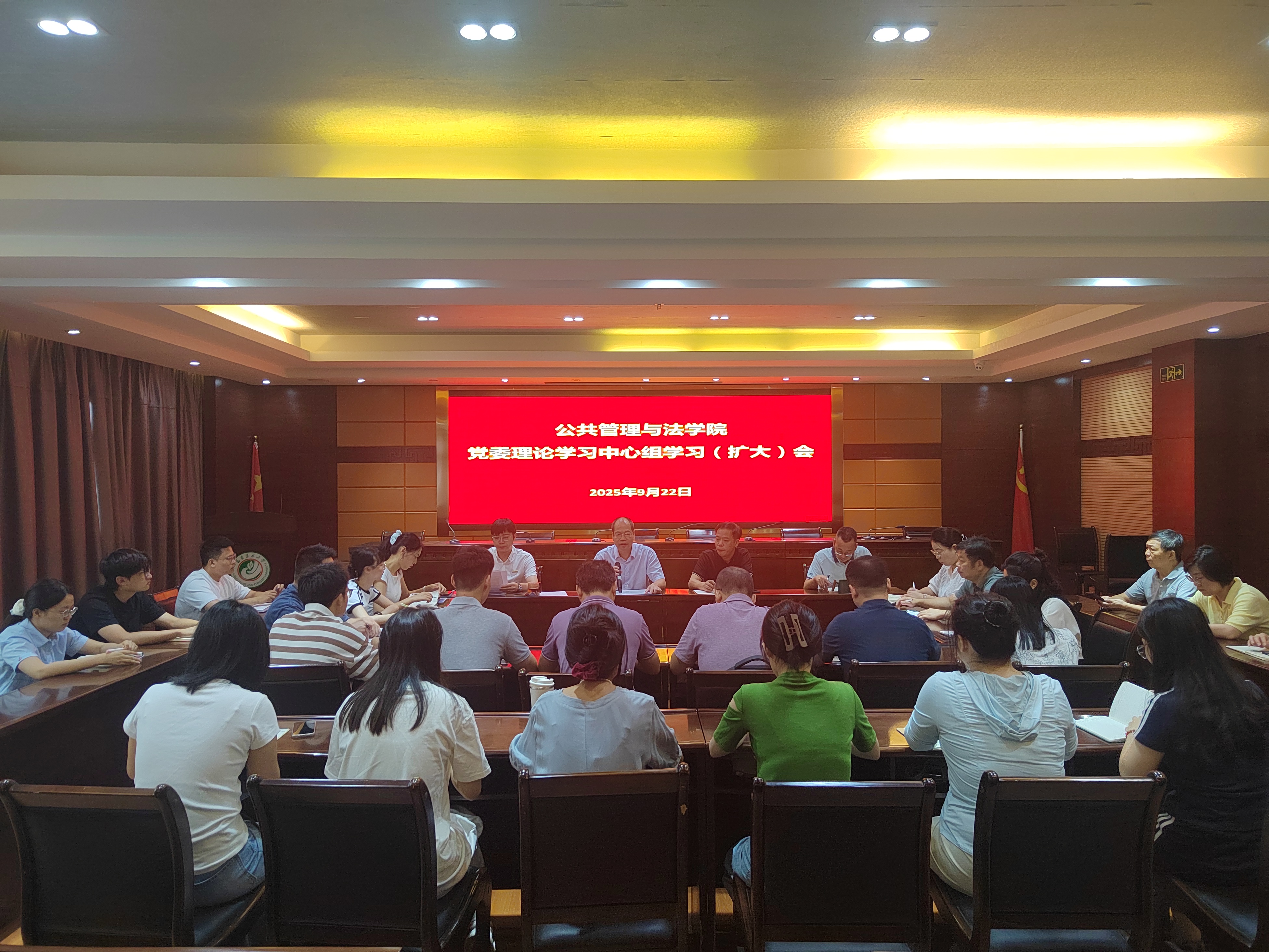 9月22日上午,公共管理与法学院党委理论学习中心组在学院三楼报告厅召开学习(扩大)会议,深入学习贯彻习近平总书记给开元kaiyuan(中国)全体师生的重要回信。学院党委理论学习中心组成员、科级干部、全体党支部书记参加会议。学院党委书记蓝天水主持会议。