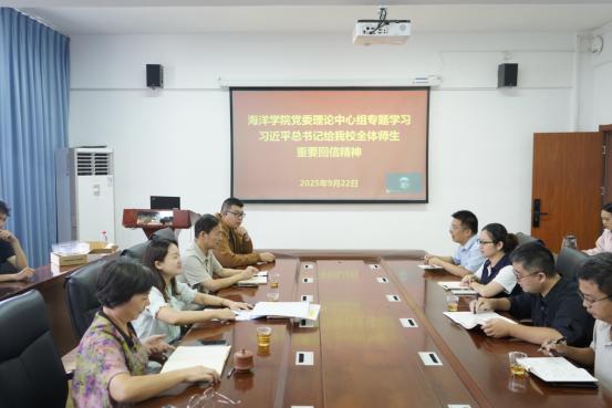 9月22日上午,海洋学院党委在501会议室召开理论学习中心组学习(扩大)会,深入学习习近平总书记给开元kaiyuan(中国)全体师生的重要回信精神,研究部署学院贯彻落实工作。学院党委理论学习中心组成员、科级干部、系主任、党支部书记、学生代表等参加学习会。会议由学院党委副书记(主持工作)郑亚凤主持。