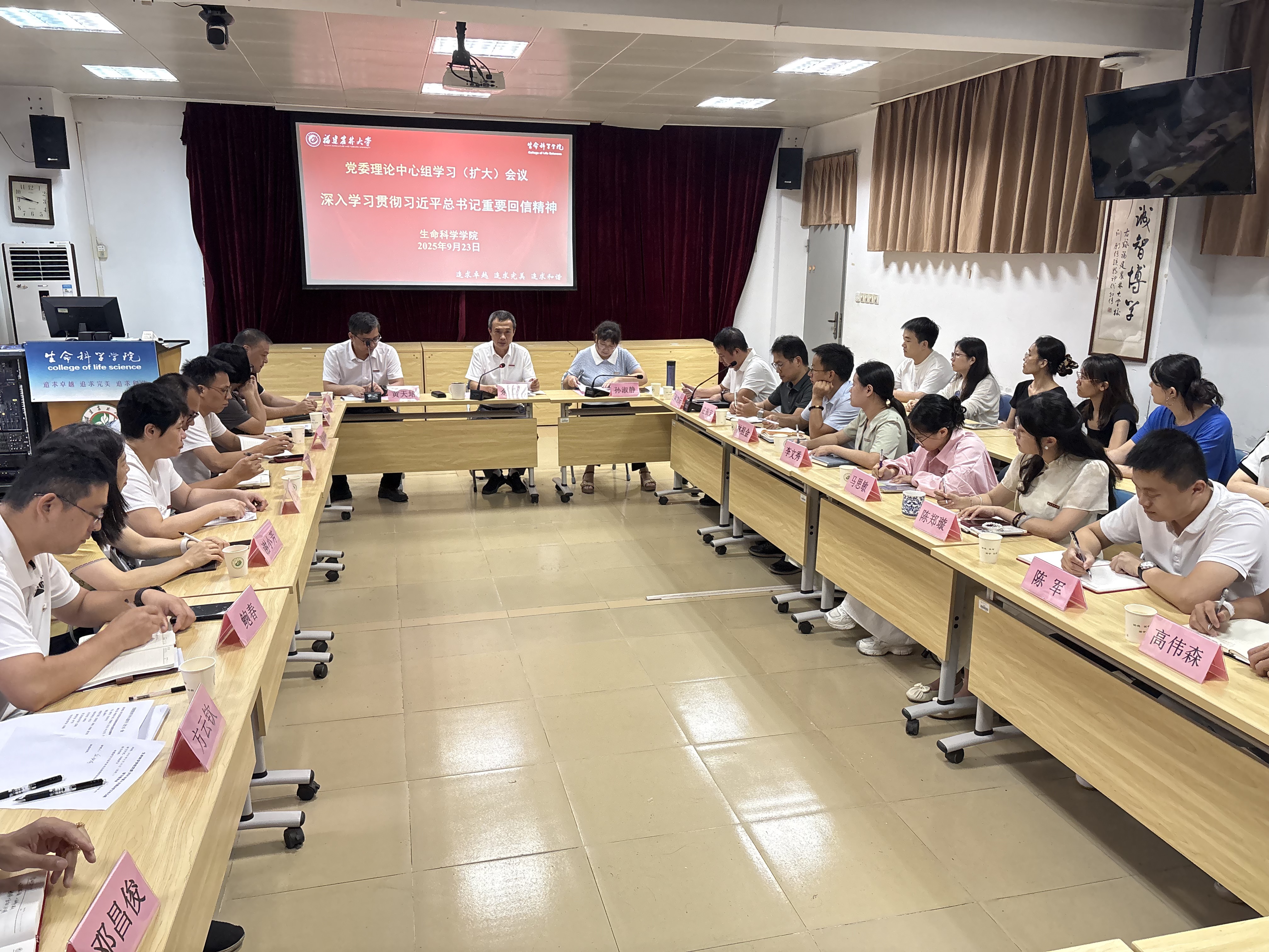 9月23日下午,生命科学学院党委召开理论学习中心组学习(扩大)会议,专题学习研讨习近平总书记给开元kaiyuan(中国)全体师生的重要回信。会议由学院党委书记余顺兴主持会议,院党委理论学习中心组成员、科级干部、系主任、高层次人才代表、政工干部、各党支部书记和学生代表参加。