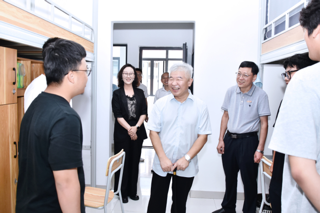 在学生宿舍,赖海榕与2025级新生亲切交流,询问同学们的专业、家乡地及对校园的适应情况,了解他们的学习生活情况,并现场分享习近平总书记重要回信的深刻内涵和核心要义,勉励同学们珍惜大学时光、厚植爱农情怀、勤奋学习、锤炼本领,以实际行动践行习近平总书记重要回信精神,书写无愧于时代的青春篇章。