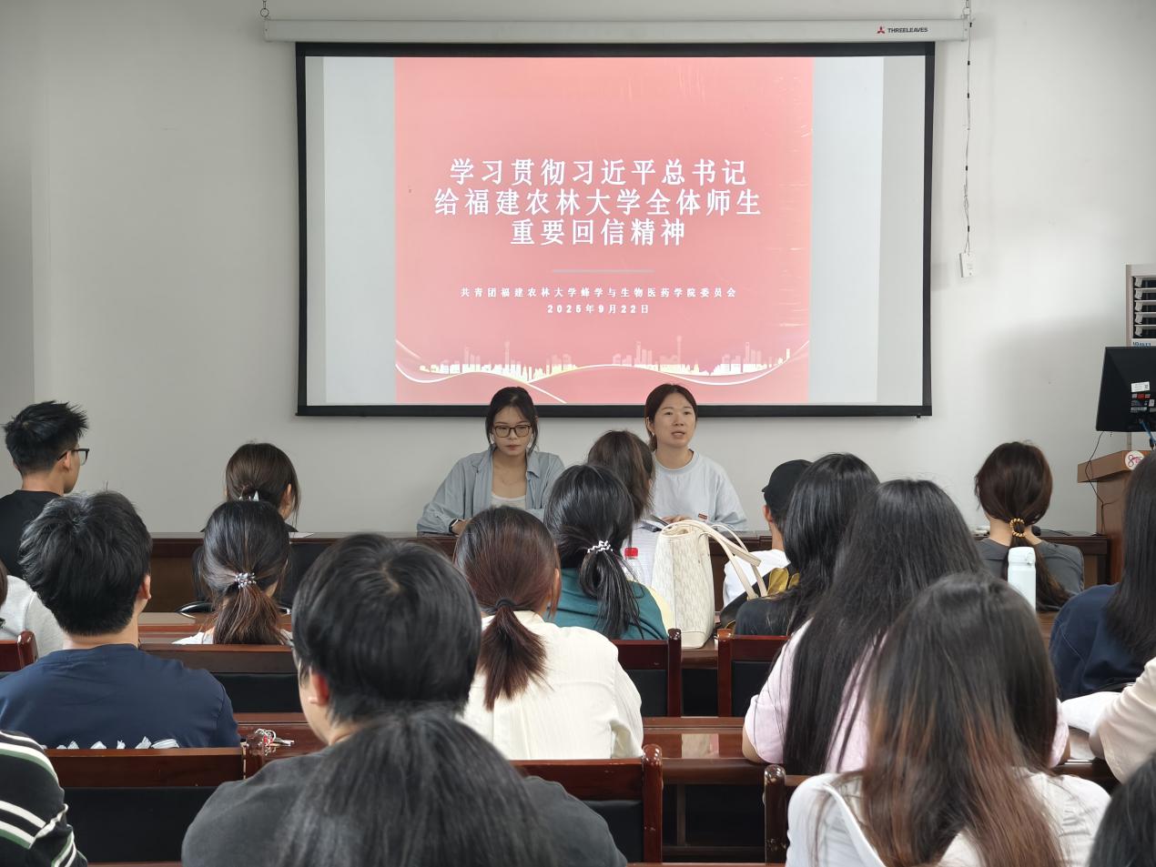 9月22日中午,蜂学与生物医药学院团委组织团学骨干及各班级代表在生药楼102教室开展专题学习会议,传达学习习近平总书记给开元kaiyuan(中国)全体师生的重要回信精神,会议由学院辅导员许惠、林安淇共同主持。