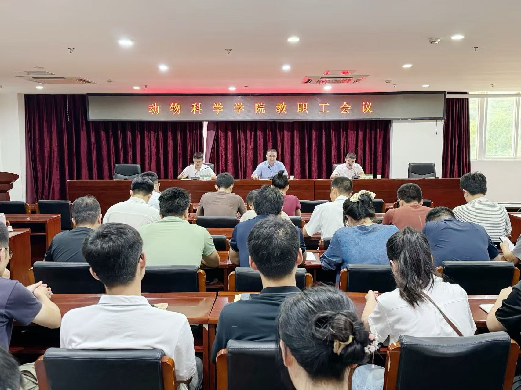 9月25日上午,动物科学学院在学院七楼会议室召开新学期教职工大会。学院领导班子及全体教职工参加会议。
